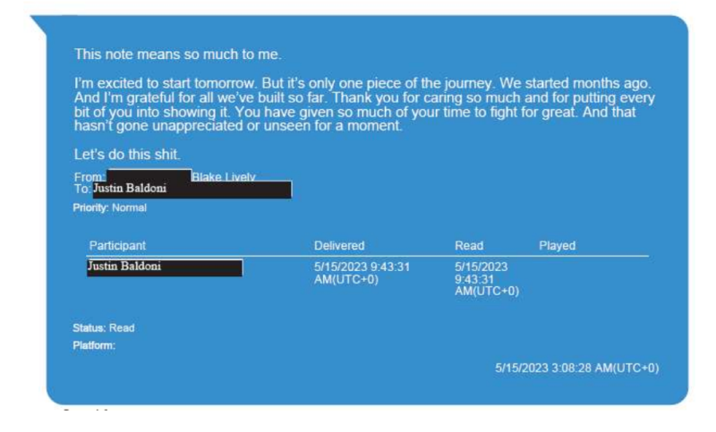 Distinct Post > Entertainment > Blake Lively’s email resurfaces in legal battle with Justin Baldoni over producer credit