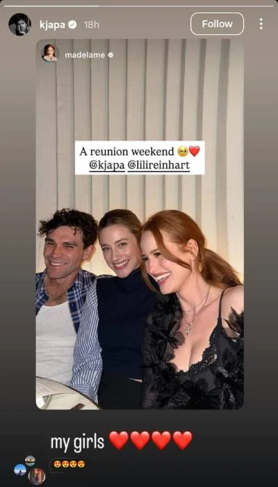 Reinhart reposted the same photo on her Instagram Stories, adding “lol” alongside a ring emoji, while Petsch wrote, “My whole world.” Fans also got a peek behind the scenes through selfies, with Petsch calling the gathering a “reunion weekend.” Apa shared one of the photos as well, captioning it, “my girls,” accompanied by three heart emojis.