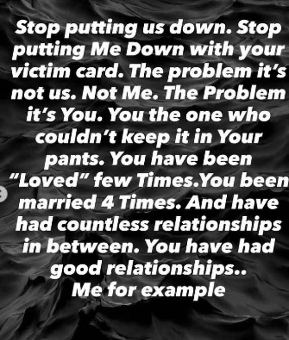 In a fiery Instagram Story post, the 51-year-old former model and actor directly addressed Lopez’s comments. “Stop putting us down. Stop putting me down with your victim card. The problem is not us. Not me,” he wrote.