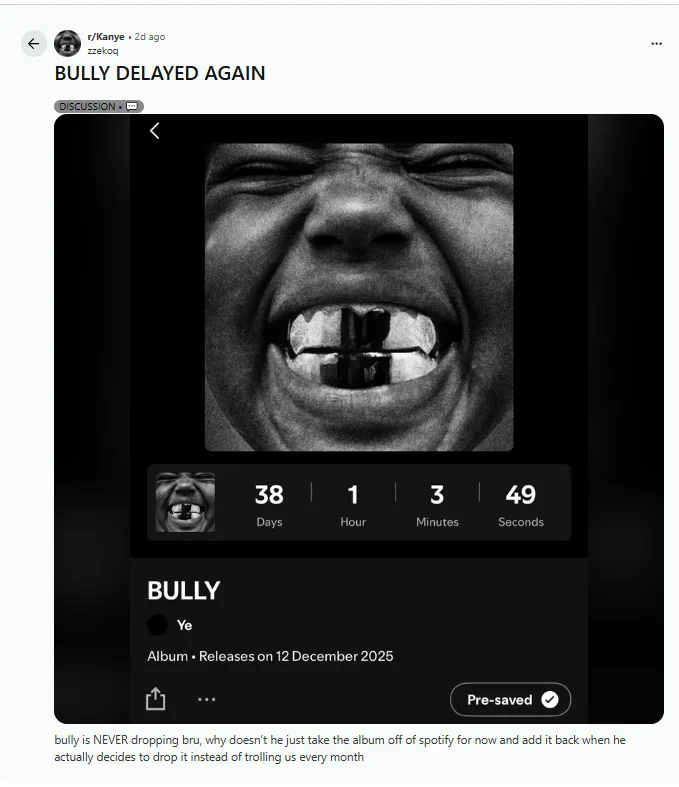 These repeated delays have left fans wondering whether Ye is perfecting the project or orchestrating another round of his unpredictable chaos.