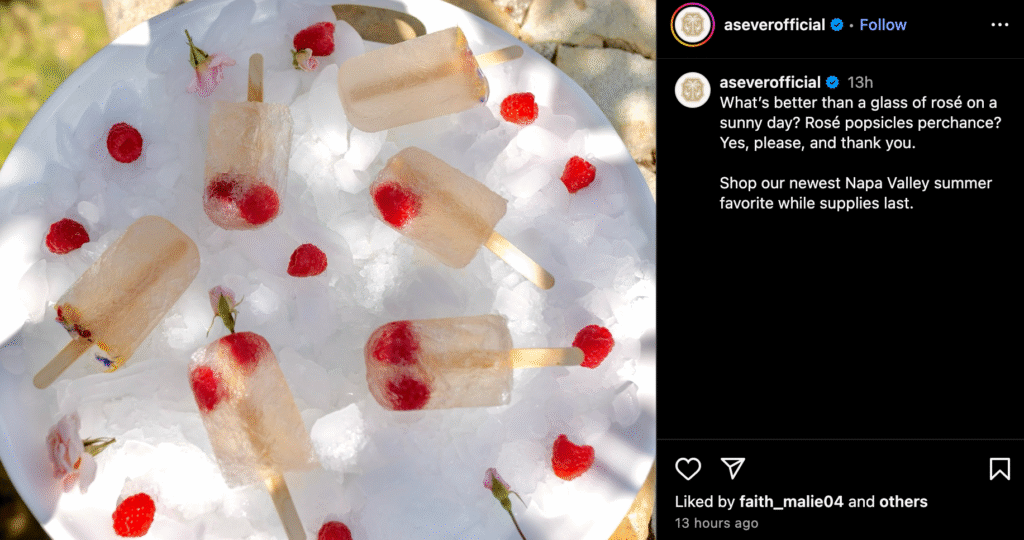 Currently, the As Ever Napa Valley Rosé and its new raspberry popsicles are only available to customers in the United States, with shipping restricted to addresses within the United States.