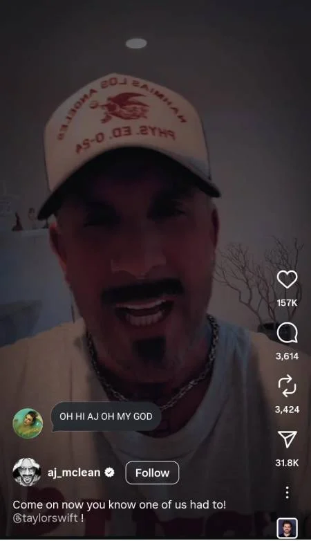 In the Instagram clip, McLean captioned, “Come on now you know one of us had to!” and tagged Swift, drawing her immediate attention. The pop icon responded, “OH HI AJ OH MY GOD,” igniting fan theories about a future collab.