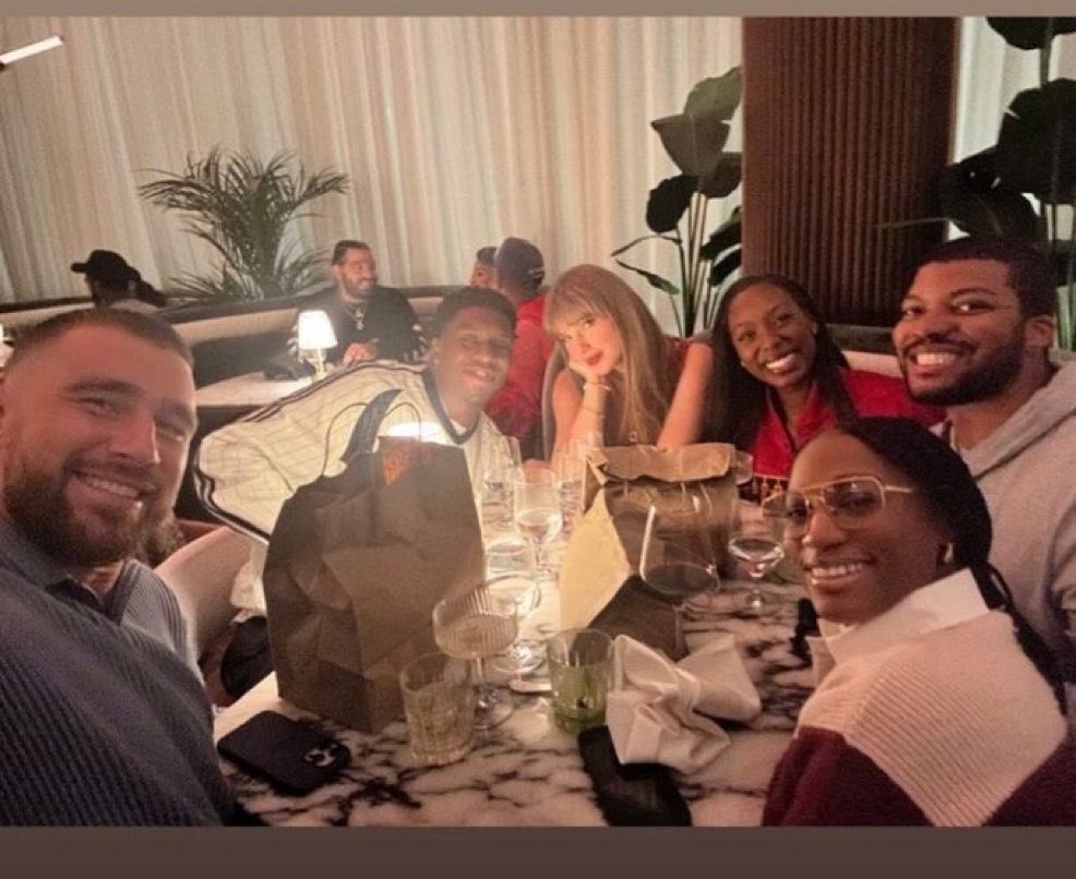 Kelce, 36, looked equally polished in a gray polo and black pants, while Patrick Mahomes joined the celebration wearing a coordinated beige outfit. A photo shared on social media showed the couple smiling at their table with friends — a rare moment of normalcy amid their high-profile romance.