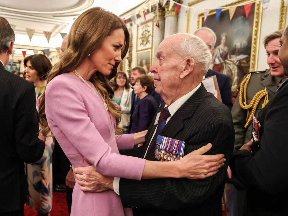 The wife of the British Crown Prince Princess Kate Middleton during her meeting with a veteran breaks protocol and hugs him but then she felt embarrassed when he put his hand around her waist and had to remove it quickly. pic.twitter.com/Y3gBlN27Jv