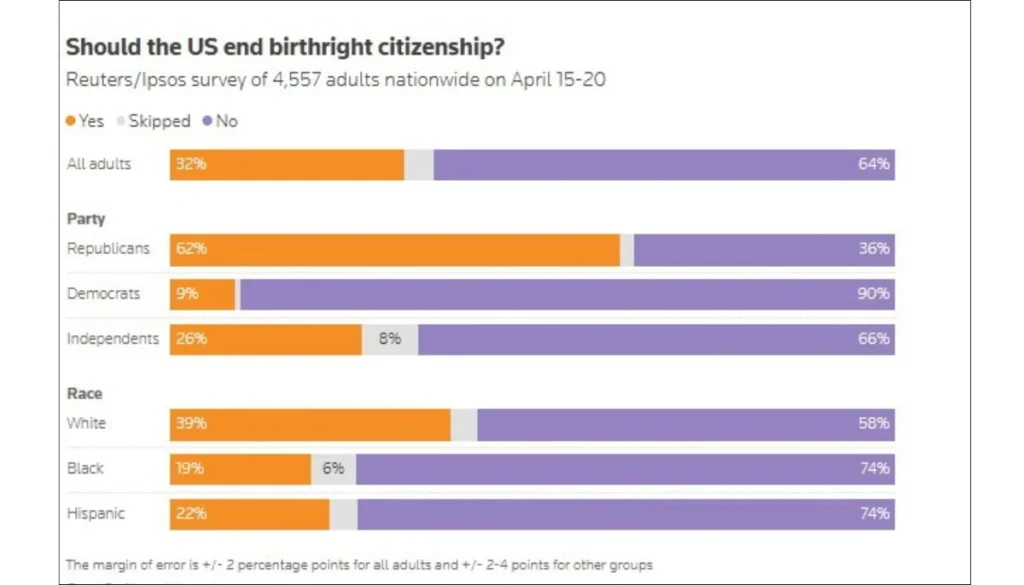 A recent Reuters / Ipsos poll found that most Americans continue to support the principle of birthright citizenship, even as the issue reaches the highest court in the country.
